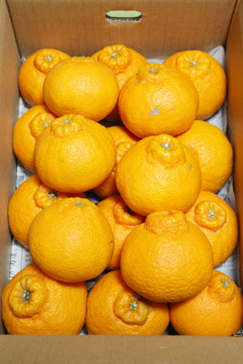 デコポン到着いたしました。早速6分の1が家族の胃袋に消えました。他のデコポンは食べたこと無いのですが、両親がそこらのデコポンとはぜんぜん違う!とやっぱり感動しておりました。