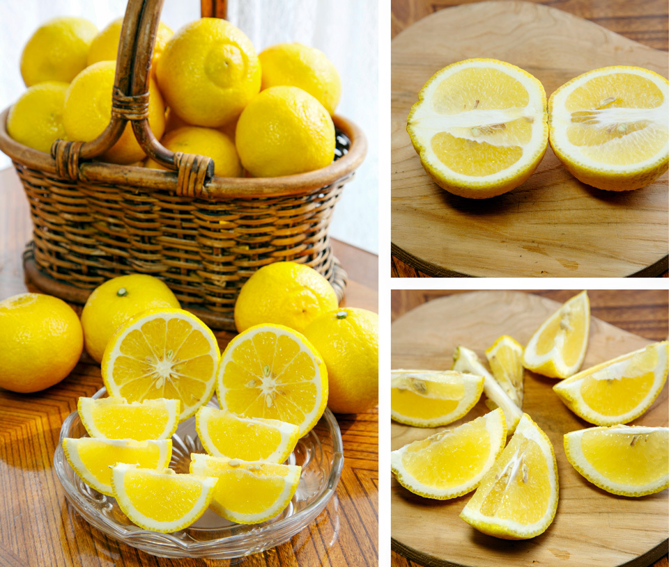 はるかはレモンのように外の皮が固いためカットしてお召し上がりください。