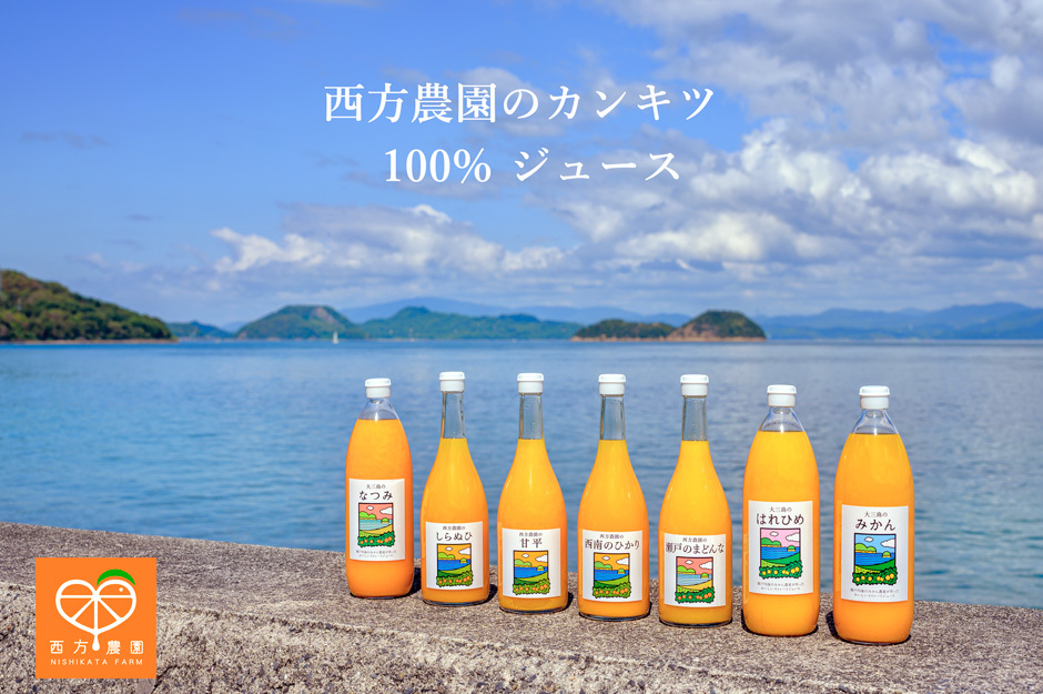 すべてのカンキツジュースは西方農園でとれた果実を100%使用しています。