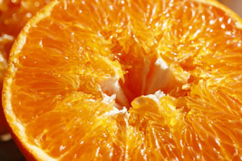 太陽の光によくあたった果実は、オレンジが色あせて黄色くなっていますが味には影響ありません。