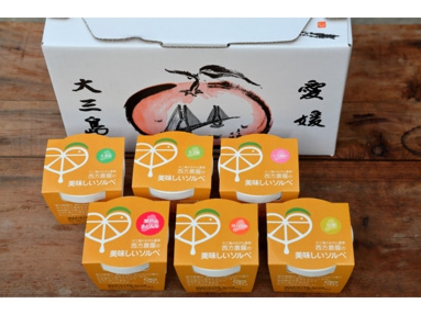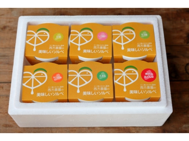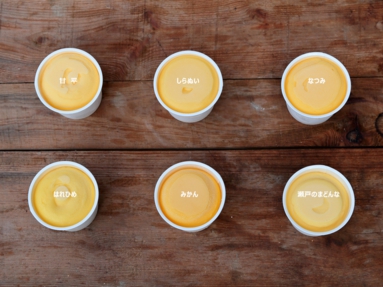 うんしゅうみかんのソルベ:4個、なつみのソルベ:4個、はれひめのソルベ:2個、瀬戸のまどんなのソルベ:4個、甘平のソルベ:4個、しらぬいのソルベ:2個