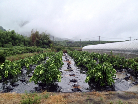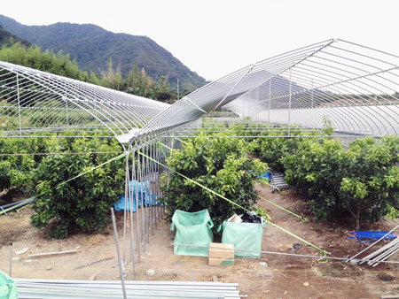 そして10月以降は果実に雨があたると傷んでしますので巻き上げているビニールをおろします。